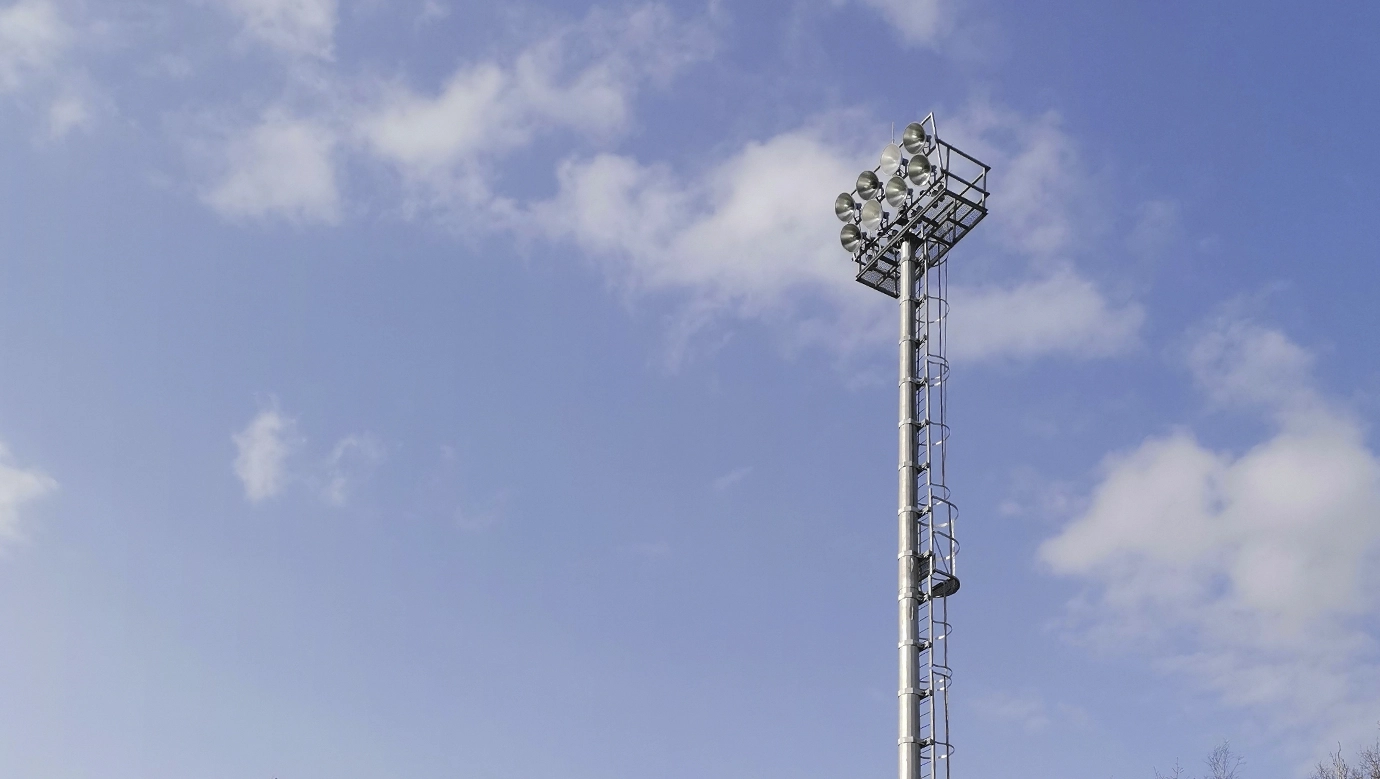 В рамках реконструкции спортивного объекта было изготовлено и установлено 4 мачты освещения типа ВМОН. Конструкции успешно смонтированы и введены в эксплуатацию.