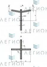 Изделие имеет два ответвления для крепления светильников с возможностью индивидуальной настройки угла наклона. Кронштейн изготавливается из высокопрочной стали толщиной от 3 миллиметров. Конструкция предусматривает различные варианты установочных мест и высоты вылета от 0,8 до 2,5 метров. Производство позволяет изменять конфигурацию изделия под конкретные проектные задачи.